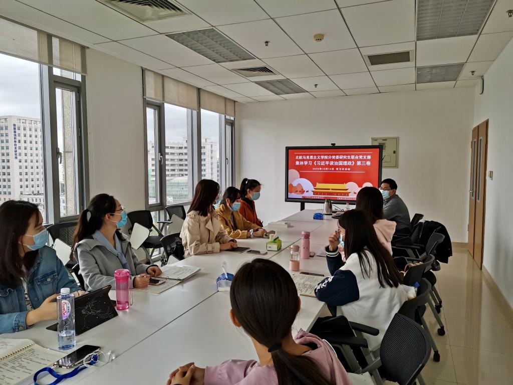 为全面深入学习贯彻落实习近平新时代中国特色社会主义思想和党的十九大及十九届二中、三中、四中全会精神,学深悟透《习近平谈治国理政》第三卷,世界杯体育官方网站研究生党支部于10月14日组织开展了以集中学习《习近平谈治国理政》第三卷为主题的“马院青年原著读书会”党日活动。党支部副书记陈思康同志向大家传达了《中央宣传部、中央组织部关于认真组织学习<习近平谈治国理政>第三卷的通知》,并强调支部全体成员要认真学习深刻领会其中精神,要发挥学科专长,阅读经典原著,将马克思主义原理与实际相联系,始终坚持以习近平新时代中国特色社会主义思想为行动指南。