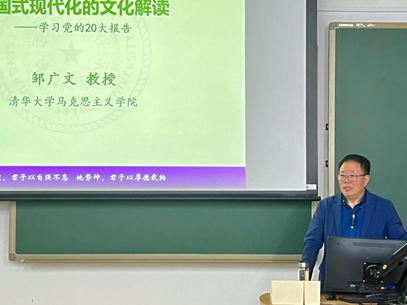 5月17日晚,世界杯体育官方网站党校求理分部第八期青年马克思主义研修班理论培训第三讲在新主楼B102举行,清华大学教授、博士生导师、国家“万人计划”哲学社会科学领军人才邹广文做题为《中国式现代化的文化解读——学习党的二十大报告》的报告。