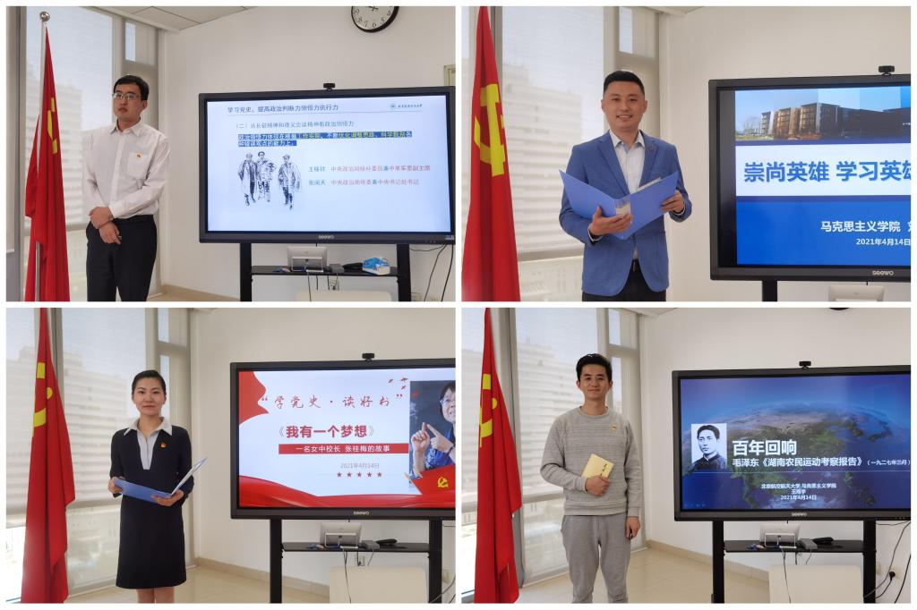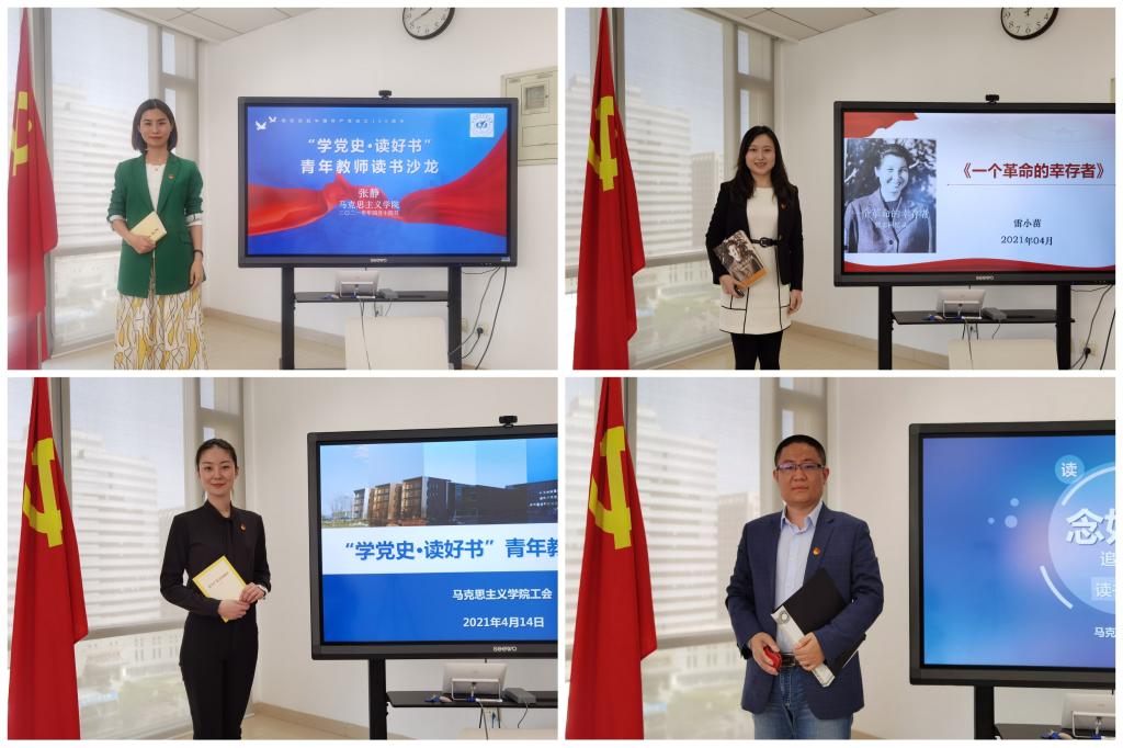 读书沙龙分两场举行,由世界杯体育官方网站工会主席陈萌老师主持。在4月7日的首场读书沙龙上,孙润南、赵华珺、徐冶琼、陈丹、宋芳芳老师分享了长征路上徐解秀老人与三个女红军战士之间“半条被子”的感人故事、烈士史砚芬充满牺牲精神和深沉爱意的诀别家书、毛泽东同志《关心群众生活 注意工作方法》的节选片段、小说《红岩》中的精彩片段以及赵觉和赵云霄这对革命伉俪的两封感人至深的遗书。在4月14日的第二场读书沙龙上,孙新、刘浩然、申文昊、王海宇、张静、雷小苗、吴东姣、曹镇玺老师分享了《在党史学习教育动员大会上的讲话》,小说《高山下的花环》,全国脱贫攻坚楷模、华坪女高校长张桂梅事迹,毛泽东同志《湖南农民运动考察报告》、《实践论》与《习近平与大学生朋友们》节选,《一个革命的幸存者•曾志回忆录》,刘少奇同志《论共产党员的修养》,习近平总书记的词《念奴娇·追思焦裕禄》等,内容丰富,形式多样。