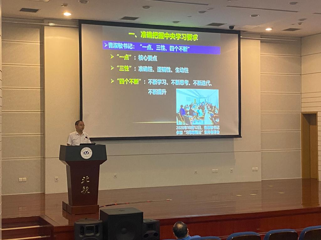 为深入学习宣传习近平总书记在庆祝中国共产党成立100周年大会上的重要讲话精神,贯彻落实上级部门关于党史学习教育的工作部署,7月9日下午,世界杯体育官方网站召开全院教师大会,学院院长赵义良、分党委书记高宁分别以“思政课建设历程的回顾与思考”“深入学习‘七一’重要讲话精神”为题,为全院教职工讲授党史学习教育专题党课。