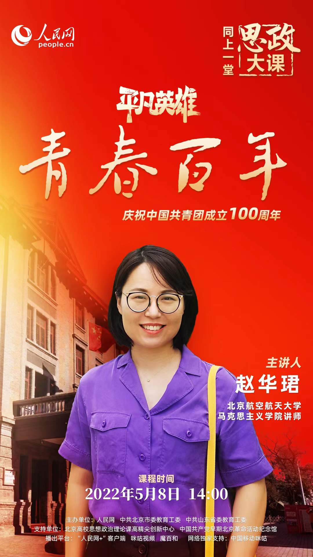 5月8日,为庆祝中国共青团成立100周年,由人民网、中共北京市委教育工委、中共山东省委教育工委共同推出的“青春榜样”系列思政课——“平凡英雄•青春百年”思政大课在人民网播出。