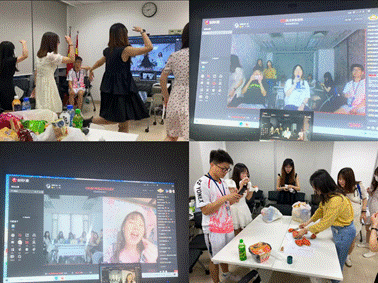 同时,线上线下同步直播的“夏夜歌会”也极大地丰富了同学们的业余生活。校内同学们在学院会议室表演了《好运来》《天使的翅膀》《青春舞曲》《最炫民族风》等歌曲独唱、合唱,以及趣味舞蹈表演。校外多名师生线上连线,与现场同学共同演唱动听歌曲,带动全场大合唱。活动在师生的欢声笑语中圆满落下帷幕。