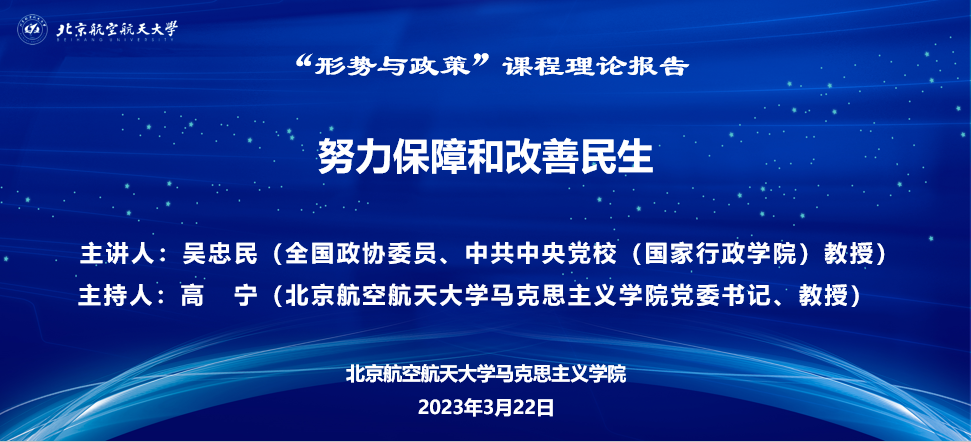 2023年3月22日下午,世界杯体官网“形势与政策”课程邀请全国政协委员、国家哲学社会科学一级教授、中共中央党校专家工作室领衔专家吴忠民教授走进世界杯体官网思政课课堂,作《努力保障和改善民生》专题报告。报告采取线上线下相结合的方式进行,世界杯体官网2021级和2022级本科生、世界杯体育官方网站和沈元学院师生聆听报告。世界杯体育官方网站党委书记高宁主持报告会。