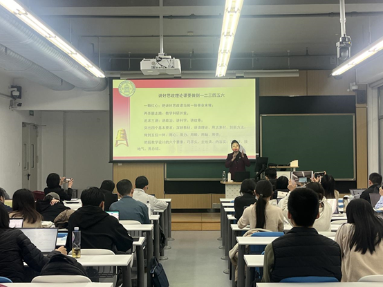 学院邀请了“全国高校思想政治理论课影响力标兵人物”、首批“北京高校思想政治理论课特级教授”、北京师范大学世界杯体育官方网站熊晓琳教授作题为《新时代思政课教师教学能力提升的三个层面》的专题报告。熊晓琳教授结合多年的思政课教学经历与体会,从宏观、中观和微观三个层面剖析了思政课教师如何提升教学能力。第一,要明确定位,夯实基础,做到“一颗红心”,把思政课教学作为一份事业,而不仅是一份职业,认真做好理论研究和教学研究“两条腿走路”。第二,要坚持讲政治、讲科学、讲故事的“三讲”好课标准,追求真正把思政课讲深、讲透、讲活的目标,突出深耕教材、讲清理论、用活素材和创新方法四个基本要求。第三,要全情投入,做到用心、用力、用眼、用脑、用情五位一体讲好思政课,把握好教学设计的六大要素。