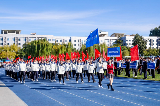 10月19日清晨,马院全体师生齐聚田径场参加运动会开幕式。伴随着雄健激昂的进行曲,世界杯体育官方网站方阵队高举院旗,步伐矫健,昂首走过主席台,唱响“马院启航,激情飞扬;矢志奋进,铸就辉煌”的嘹亮口号。师生们身着统一院服,摇动着手中红旗,彰显出学院鲜明的爱国底色,充分展现出新时代马院人特有的蓬勃朝气和昂扬斗志。