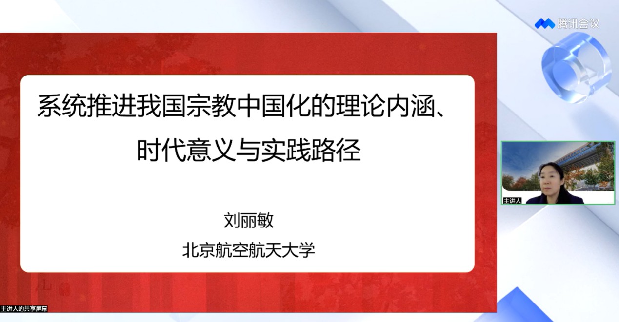 刘丽敏教授从对“系统推进我国宗教中国化”这一重大时代命题的内涵阐释入手,通过揭示其所蕴含的历史逻辑、理论逻辑、现实逻辑,深刻分析了中国特色社会主义宗教理论的核心要义和新时代党的宗教工作的总纲。她指出,宗教中国化是涉及思想、文化、制度、社会等多个层面的复杂系统工程,系统推进我国宗教中国化不仅是国家治理体系和治理能力现代化的内在要求,更有助于彰显中华文化的包容性与生命力,进一步汇聚复兴伟业的“同心圆”。她强调,广大青年学生要深入理解并贯彻党和政府的宗教政策,正确处理民族和宗教的关系,努力学习和掌握科学文化知识,为中华民族伟大复兴贡献自己的智慧和力量。